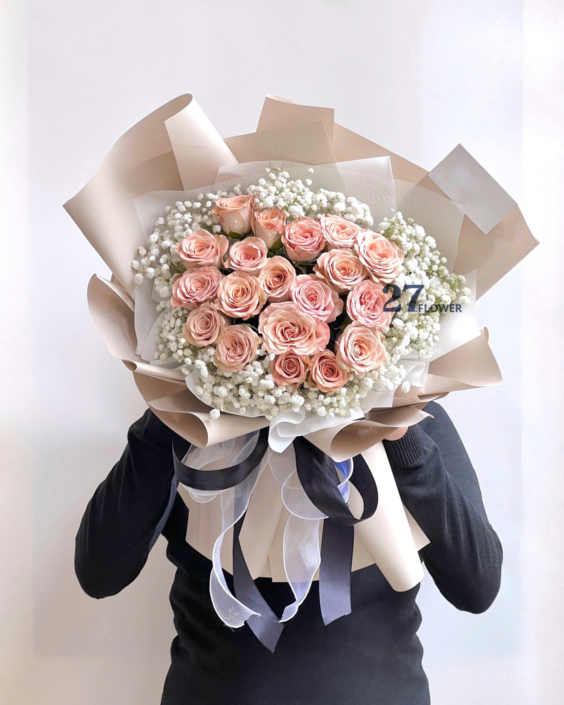 Sản phẩm được bó thủ công bằng tay,hoa theo mùa, độ nở,dáng hoa,hoa thay thế, thành phẩm sẽ đạt 70% so với mẫu.