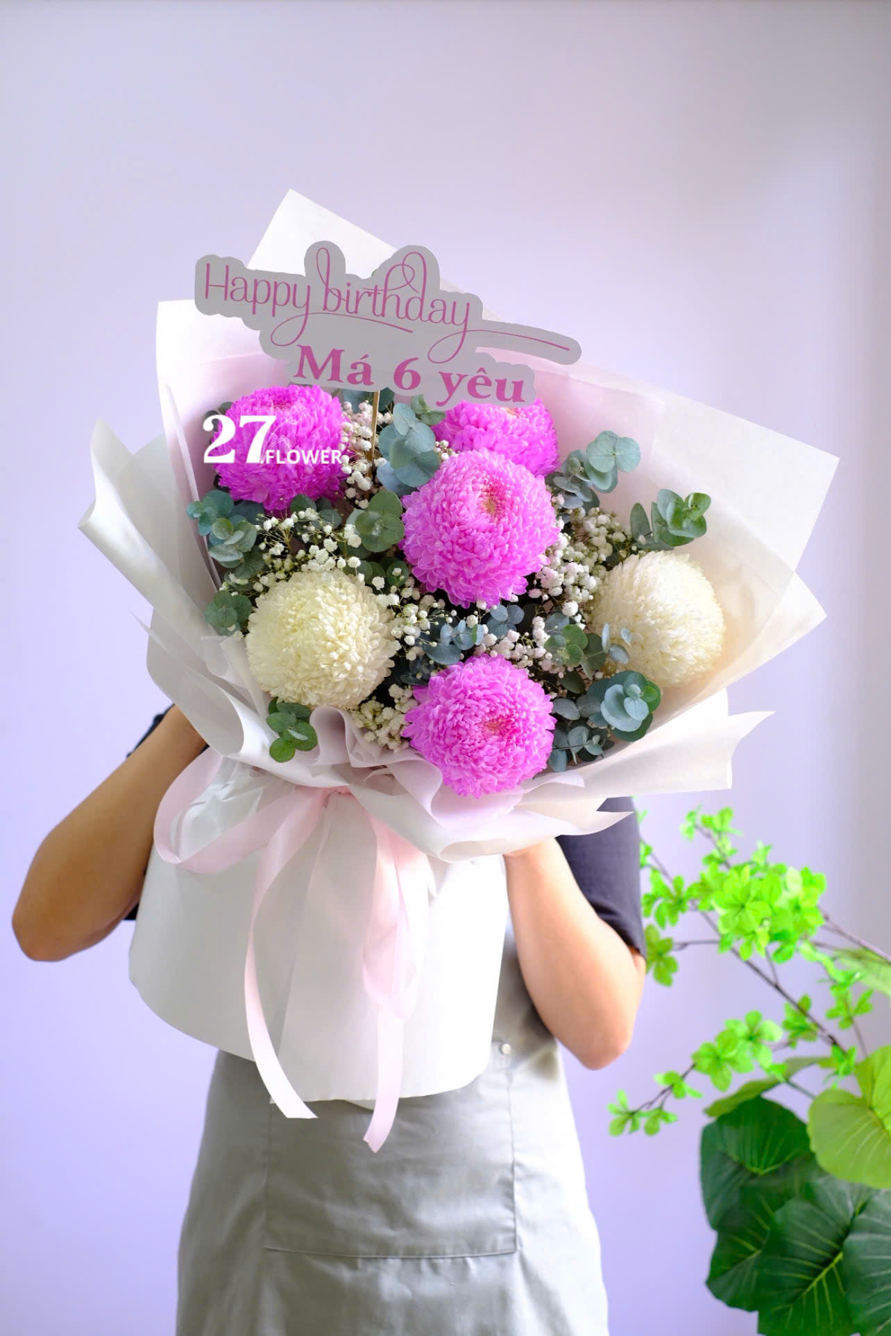 Sản phẩm được bó thủ công bằng tay,hoa theo mùa, độ nở,dáng hoa,hoa thay thế, thành phẩm sẽ đạt 70% so với mẫu.