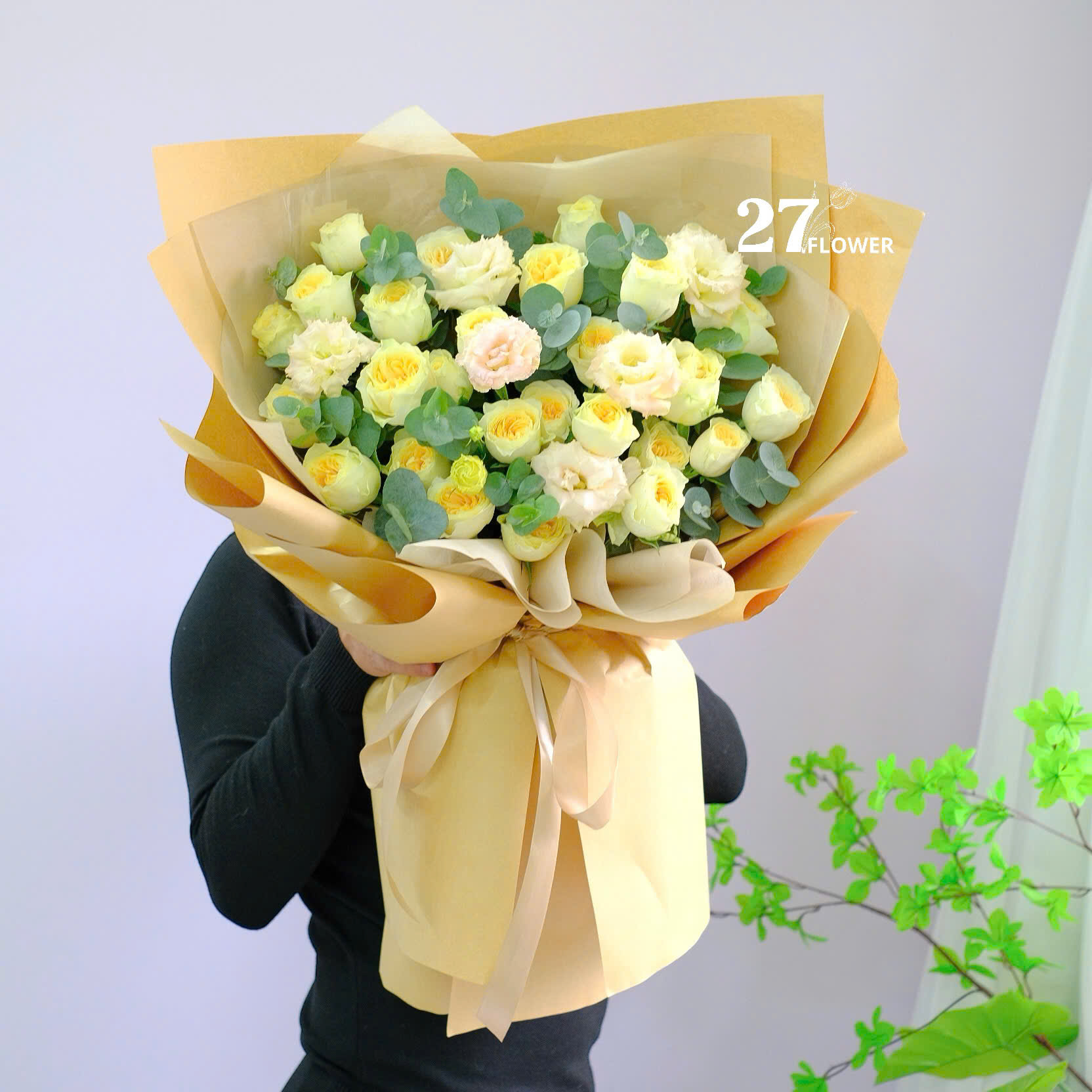 Sản phẩm được bó thủ công bằng tay,hoa theo mùa, độ nở,dáng hoa,hoa thay thế, thành phẩm sẽ đạt 70% so với mẫu.