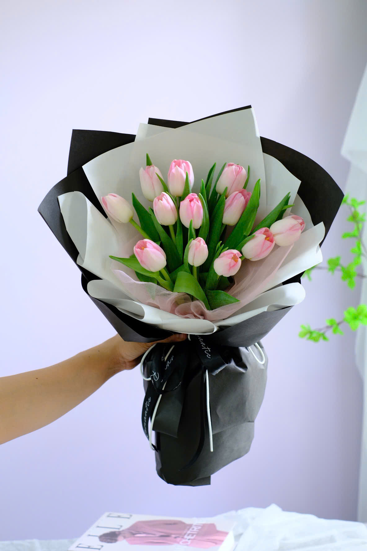 Sản phẩm được bó thủ công bằng tay,hoa theo mùa, độ nở,dáng hoa,hoa thay thế, thành phẩm sẽ đạt 70% so với mẫu.