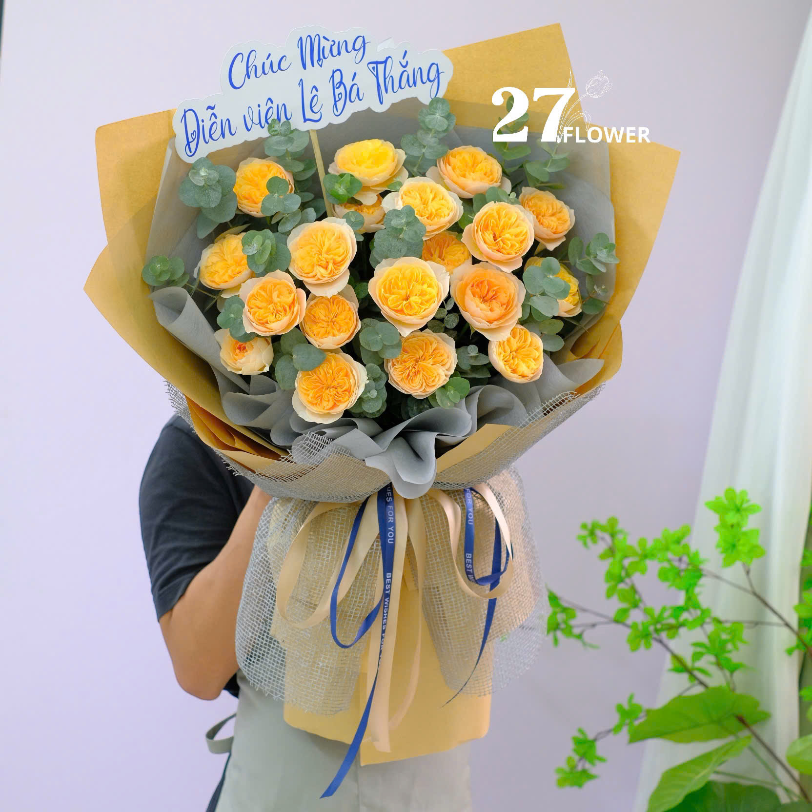 Sản phẩm được bó thủ công bằng tay,hoa theo mùa, độ nở,dáng hoa,hoa thay thế, thành phẩm sẽ đạt 70% so với mẫu.