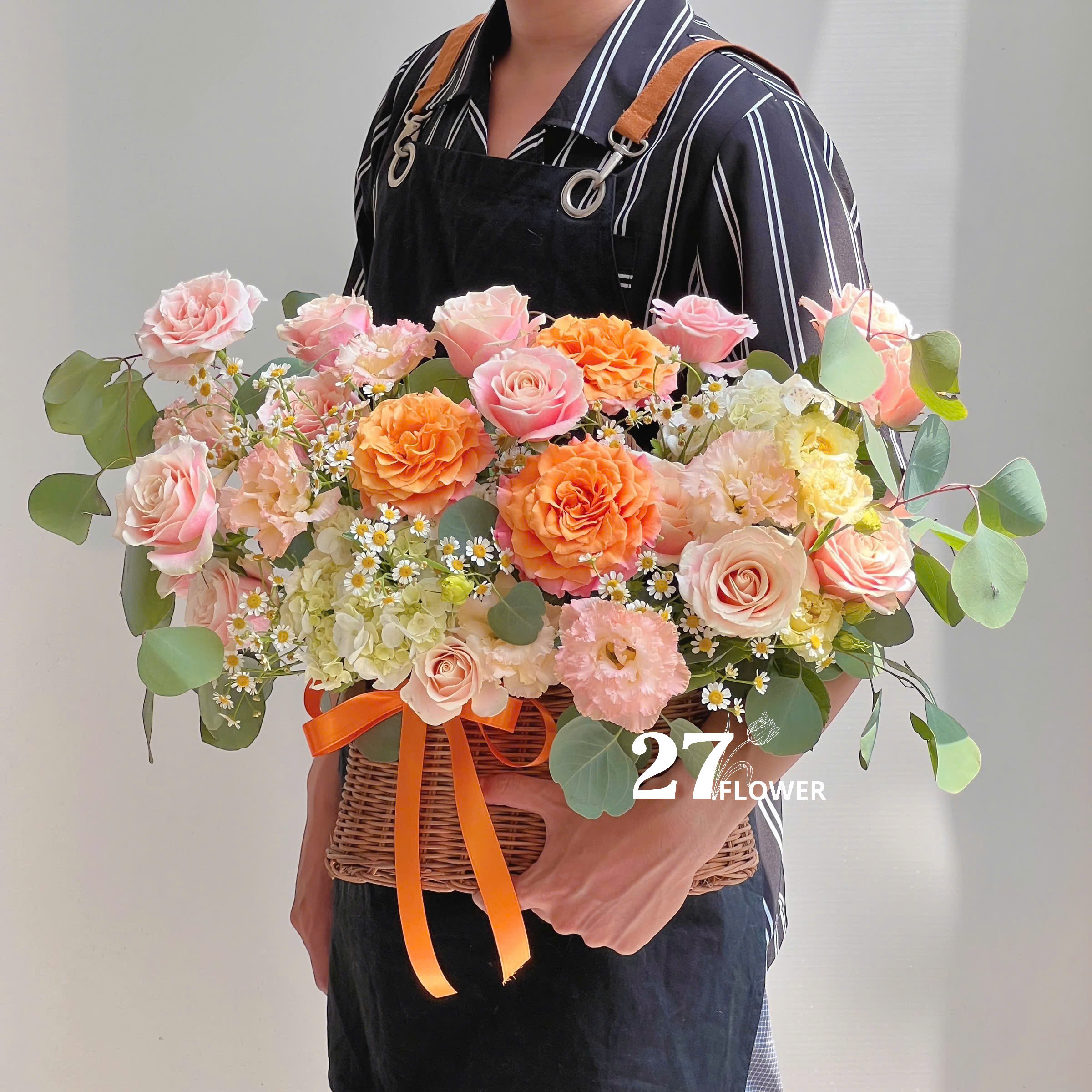 Sản phẩm được bó thủ công bằng tay,hoa theo mùa, độ nở,dáng hoa,hoa thay thế, thành phẩm sẽ đạt 70% so với mẫu.