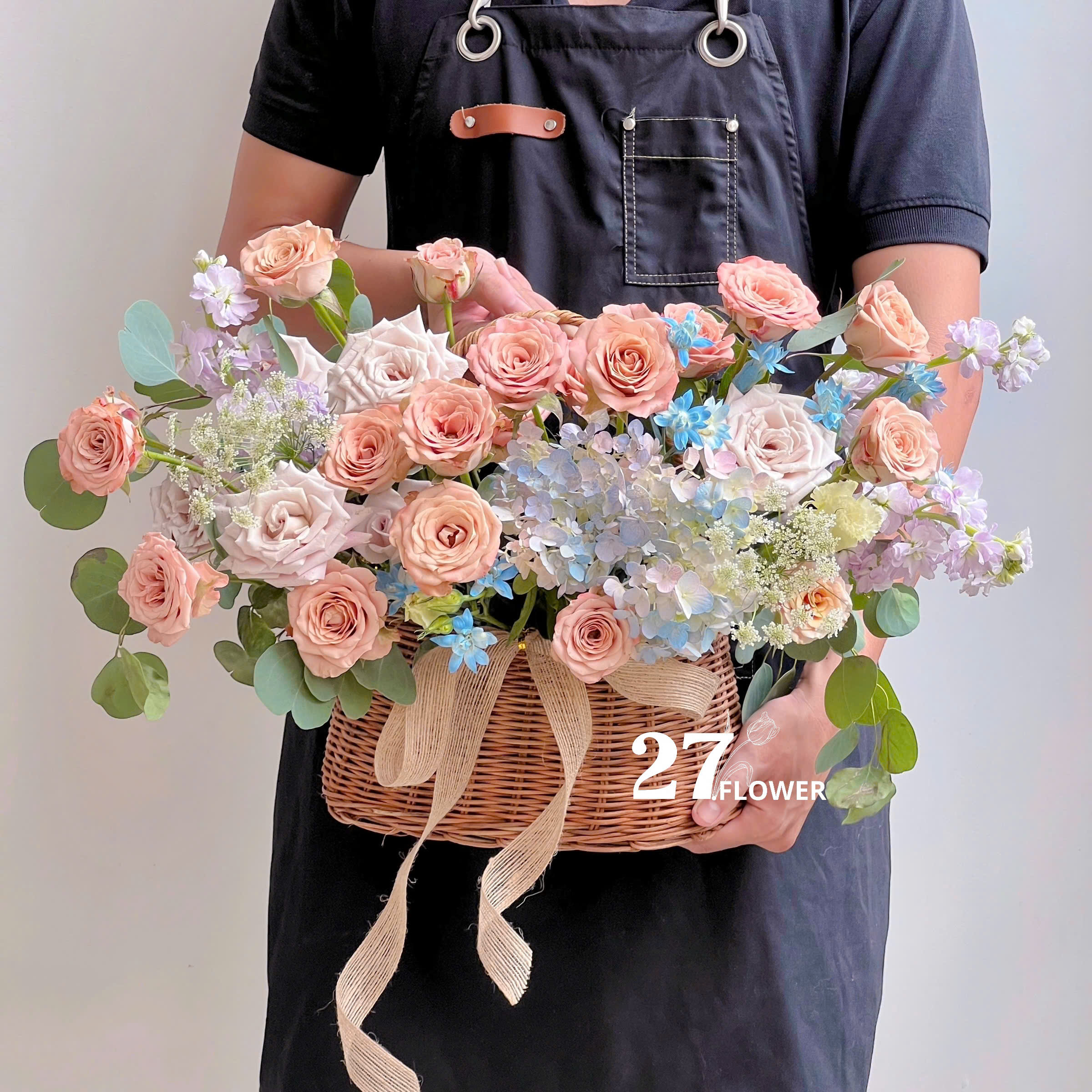 Sản phẩm được bó thủ công bằng tay,hoa theo mùa, độ nở,dáng hoa,hoa thay thế, thành phẩm sẽ đạt 70% so với mẫu.
